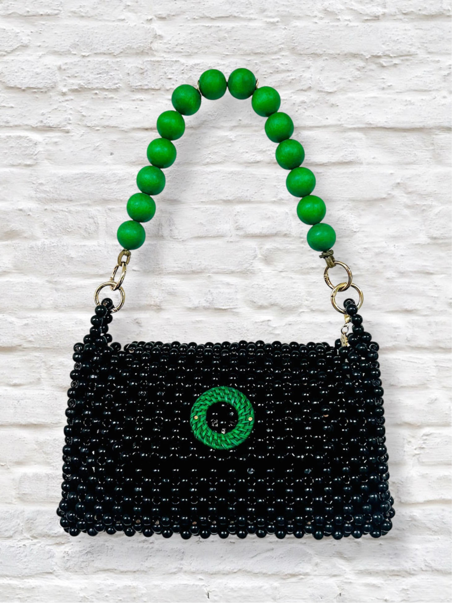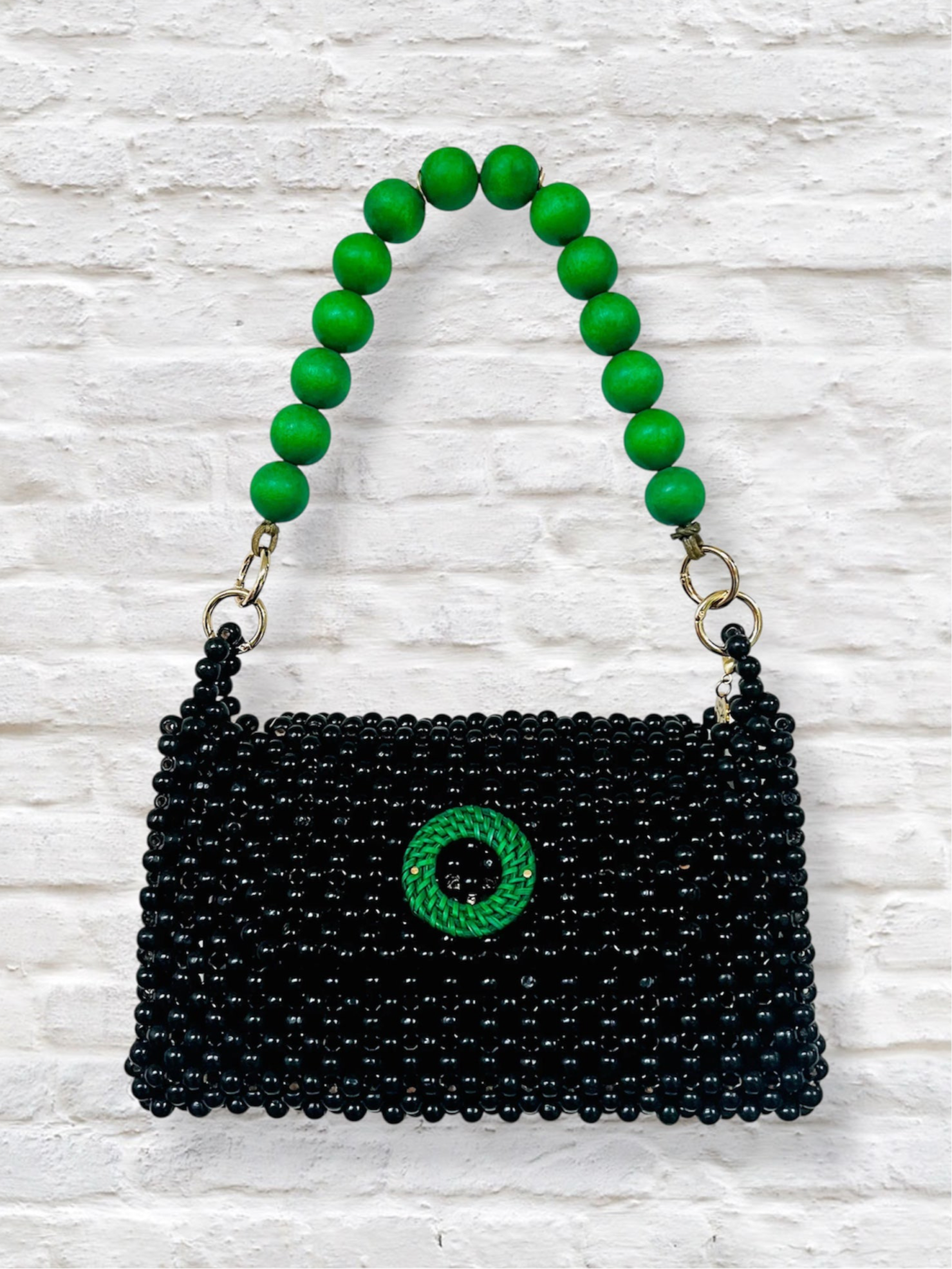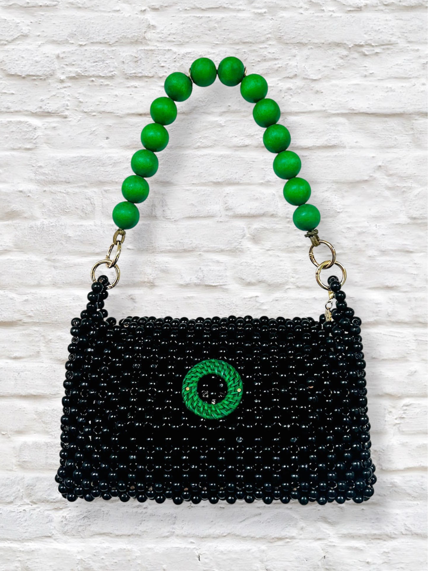 DARCY BLACK Handmade Mix and Match Wooden Pleated Bead Bag, Sustainably Made and Responsibly Sourced from the Philippines