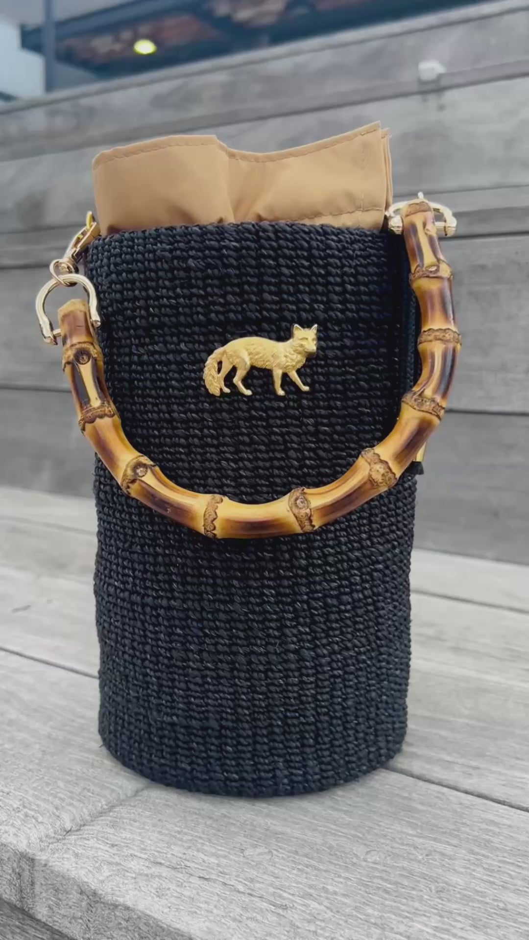 FOX BUCKET BAG with Bamboo Handle
