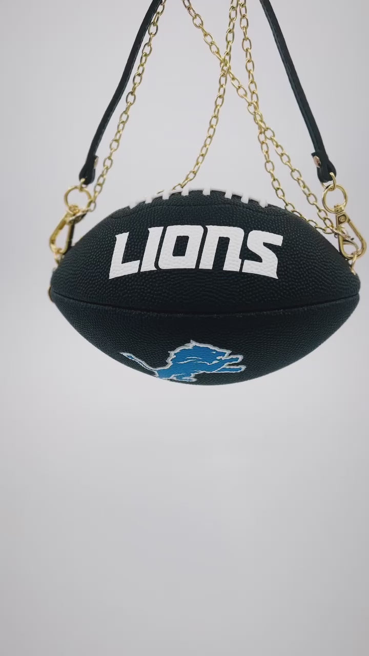 Game day just went glam! πβ¨ Crafted from an authentic mini-football and embellished with gold rivets studs and a leather-chain strap β this purse is where fierce fashion meets serious fandom!